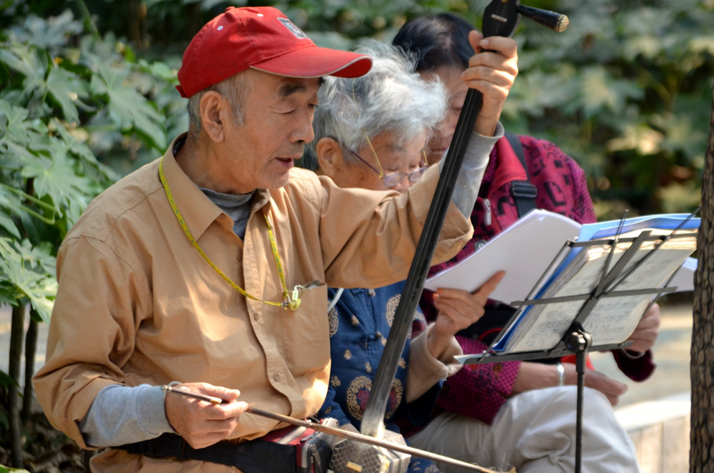 “That guy is really good,” John remarked. He and his team sat under a gazebo and listened to him play traditional Chinese music.